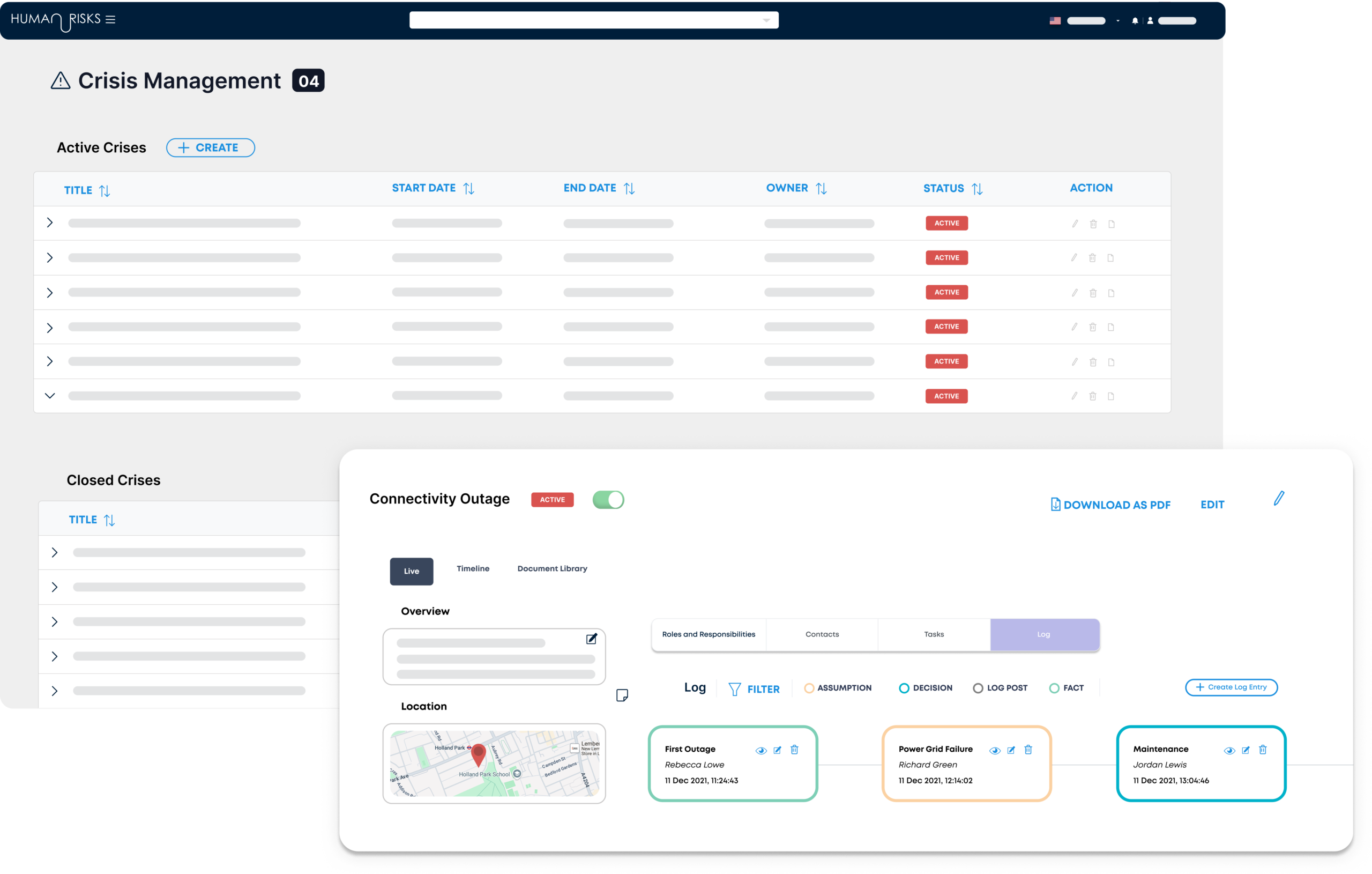Crisis Management module has automated notification and integrated log and task functionalities to keep track of every decision. Automatically send pre-defined tasks to the crisis management team whenever you activate a BCP, to alwasy stay on of top the situation.