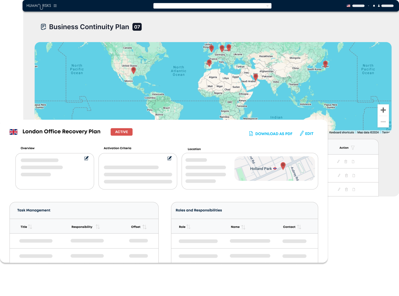 Set and automate your Business Continuity Plans with the BCP module. Choose specific activation criteria and assign roles and responsibilities, so that when a disruption happens, everyone is clear on what to do and who to contact.