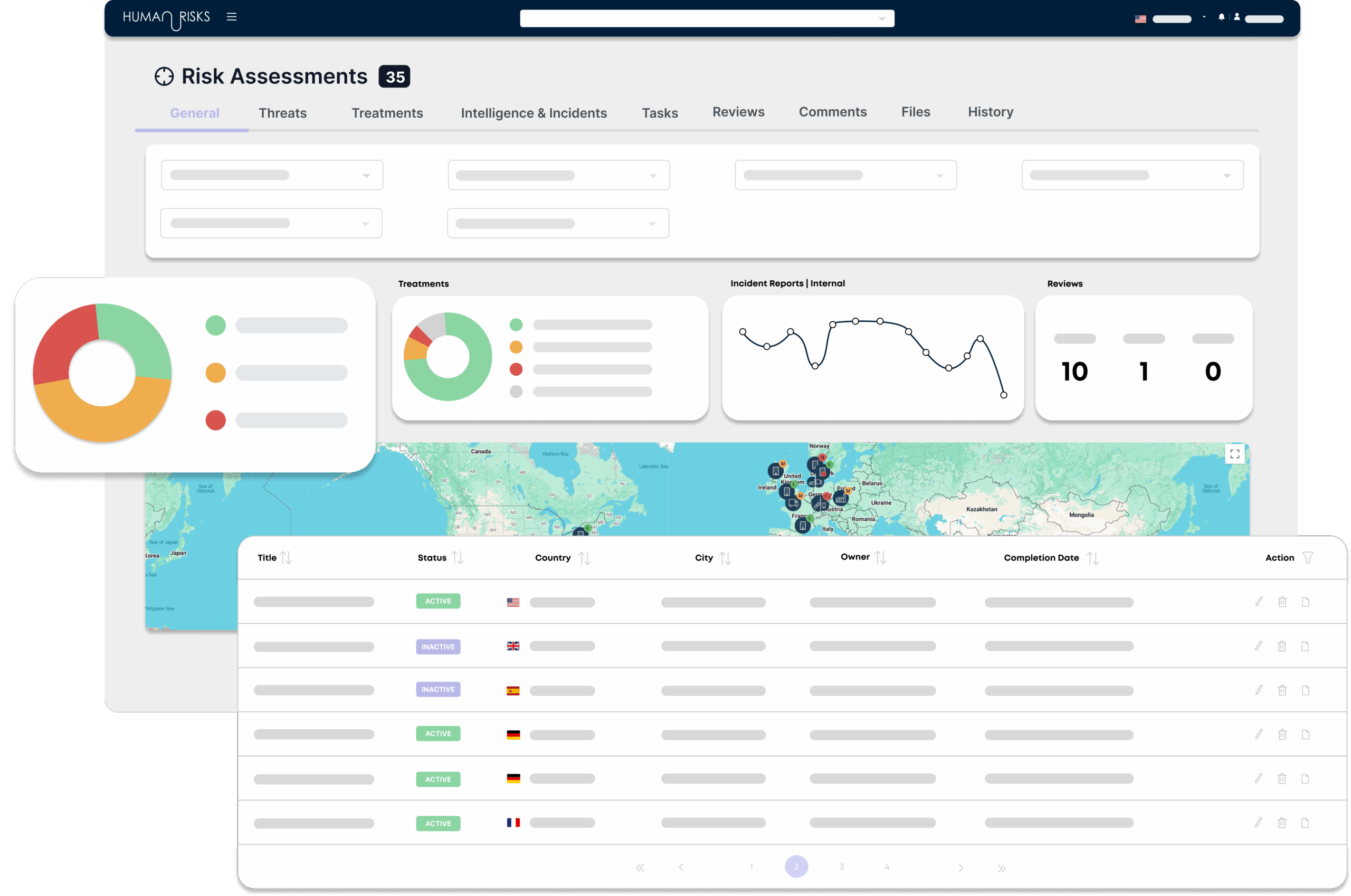 Human Risks tracks security standards implementation and incidents across offices in multiple countries.